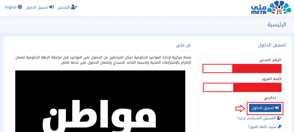 - الخطوة 2: استخدم الرقم المدني وكلمة المرور لتسجيل الدخول.